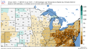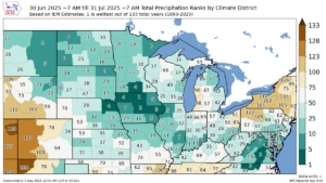 Contrast this with the map from 2025 for the same time period in which we had the 75th wettest year out of the past 135 years. While dry last year, we were not as dry as 2026 over this time period. However, the overall soil moisture profile is at least somewhat better heading into the 2026 growing season than it was at this same time last year….it is the top 6-12 inches that are most concerning right now. If dry conditions persist through planting season, this difference will most likely show up in soil and residue conditions at planting. Things to keep in mind as planting gets closer: